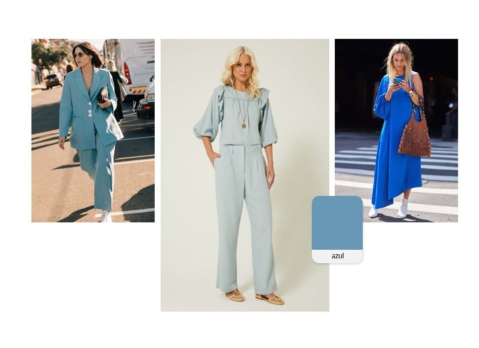 Uma cor que exala juventude: o azul. Os tons mais escuros transmitem autoridade e sabedoria. Já o significado das cores das roupas em azul-claro está mais relacionada às pessoas sonhadoras, afinal, comunicam delicadeza e suavidade. Se você também não abre mão dessa tonalidade que remete ao mar, o céu e as flores, uma sugestão é trazer para produção as possibilidades de estampa azul e ativar o modo serenidade.
