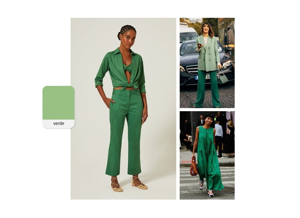 O tom da esperança! Na psicologia das cores, o verde é a cor que transmite calma e tranquilidade, uma ótima escolha para vestir no dia daquela reunião complicada no trabalho. Além de estar muito ligado a renovação de energia e a natureza, essa tonalidade consegue elevar qualquer produção do dia a dia. Os looks verdes garantem um vibe cheia de frescor que você pode embarcar sem medo.